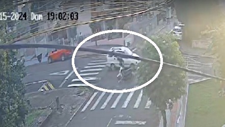 De acordo com as imagens captadas por uma câmera de monitoramento da região, o condutor do automóvel não respeitou a sinalização de preferencial, causando o impacto que fez o motociclista perder o controle e cair. O jovem, de aproximadamente 20 anos, foi projetado a vários metros do local da colisão.