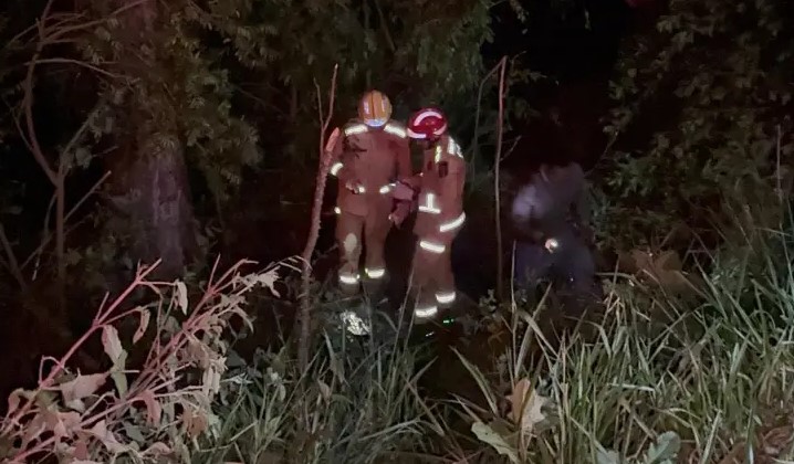 De acordo com as informações, um veículo VW Gol acabou capotando e caindo em um barranco às margens da rodovia. No automóvel estavam três ocupantes, sendo o pai e dois filhos, ambos crianças.