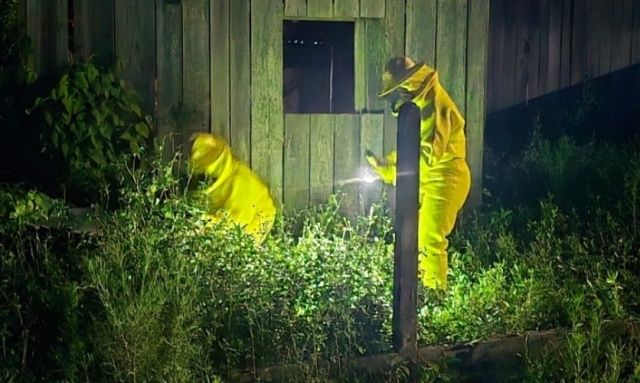 Os bombeiros foram acionados às 18h45min e, ao chegarem, constataram que o enxame estava alojado na lateral do galpão, sob um barril. Devido à intensidade do ataque, ao nível de agitação dos insetos e à presença de crianças e idosos nas proximidades, a situação foi considerada de alto risco.