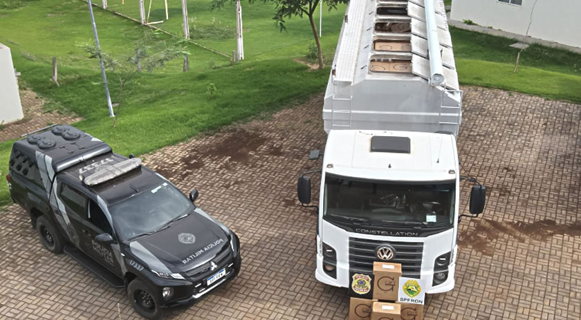 De acordo com as informações, as equipes receberam denúncia do serviço reservado indicando que um caminhão VW Constellation, de cor branca, utilizado aparentemente para transporte de ração animal, estaria sendo usado para o transporte de produtos ilícitos oriundos da Argentina.