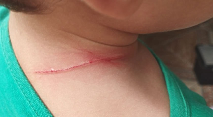 De acordo com a avó da criança, Marici dos Santos, o menino voltava do mercado com a mãe quando acabou preso ao fio que estava caído no chão. Ele sofreu arranhões na região do pescoço e precisou de ajuda imediata para se soltar. Apesar do susto, o garoto passa bem.