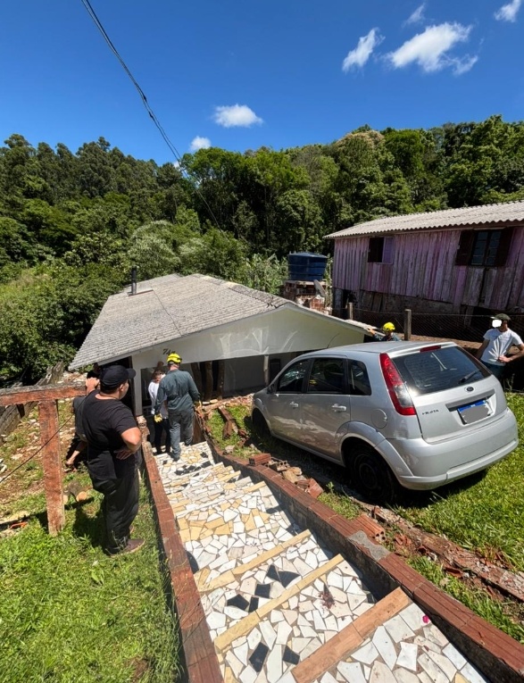 Após uma avaliação de riscos, os bombeiros conseguiram estabilizar parte da moradia comprometida e, em seguida, retirar o carro em segurança.