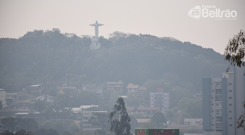 Desde o início da manhã de sexta-feira (9) um nevoeiro cinza encobre o céu de Francisco Beltrão