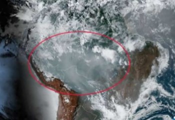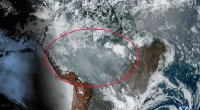 Imagens do NOAA (Administração Nacional Oceânica e Atmosférica dos Estados Unidos), de segunda-feira (5), mostram a quantidade de fumaça sobre a América do Sul.