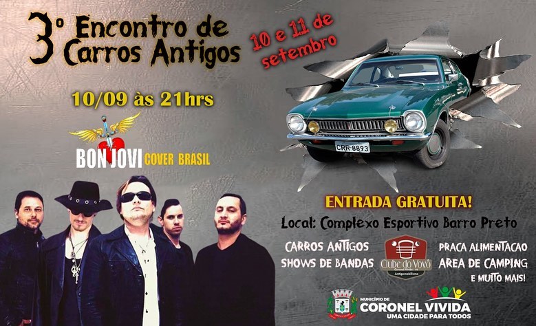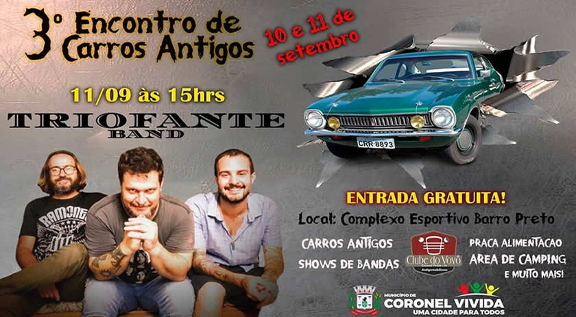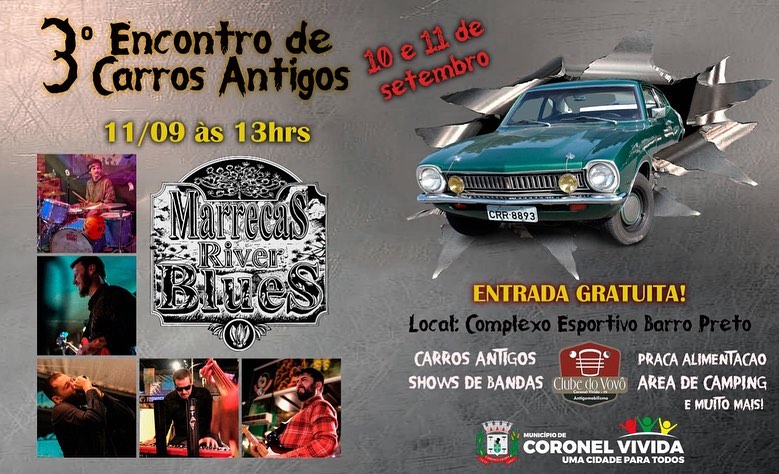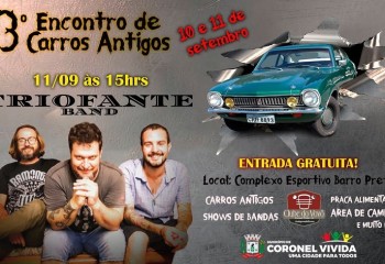 Nos dias 10 e 11 de setembro, Coronel Vivida sedia o 3º encontro de Carros Antigos, no Complexo Esportivo Barro Preto.