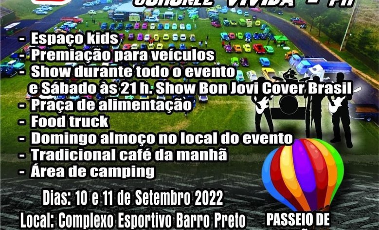 O evento promovido pelo Clube do Vovô Antigomobilismo, tem o apoio da Administração Municipal, e contará com shows de bandas, área de camping, praça de alimentação, balonismo, torneio de pebolim e muito mais.