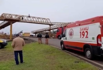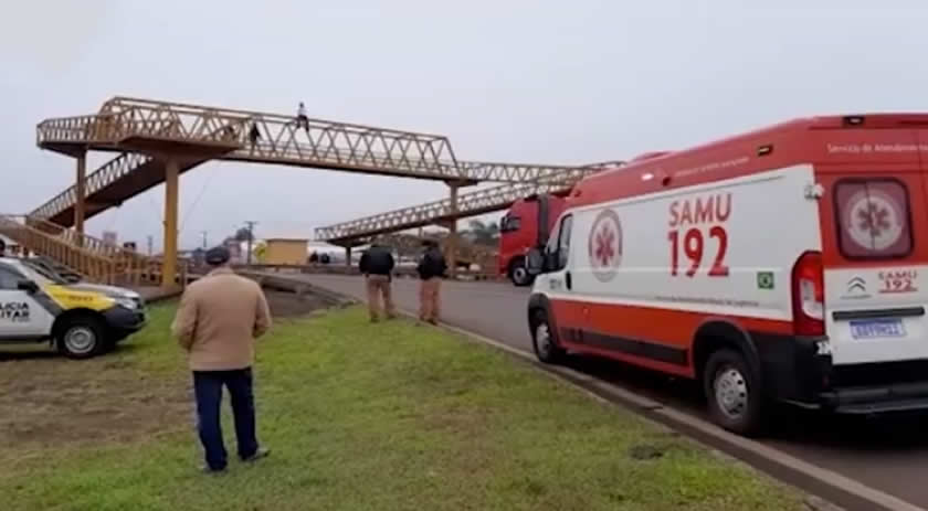 Na manhã deste sábado (10) um homem em surto mobilizou equipes do Siate, Samu e policiais para se deslocarem até a passarela da BR 277, que fica entre os Bairros Pioneiros Catarinenses e Guarujá, em Cascavel. Um dos motivos que ele alega é que está desempregado.