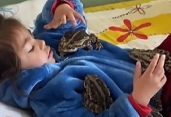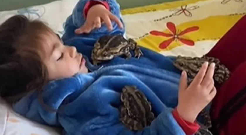 Em outro vídeo divulgado por Pedro nas redes sociais, Lívia aparece na cama da mãe, abraçada a vários outros sapos, em outros momentos, até um lagarto. Pedro disse que foi ele quem apresentou os anfíbios para a irmã e que, quando os tirou dela, a menina começou a chorar.