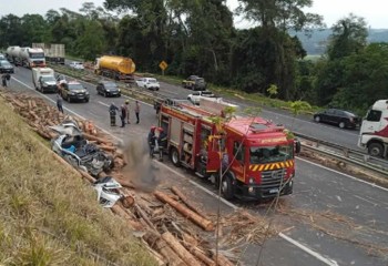 Quatro pessoas morreram depois da carga de madeira de um caminhão cair e atingir um carro na BR-376 em Tibagi, nos Campos Gerais do Paraná, na manhã desta segunda-feira (12), de acordo com a Polícia Rodoviária Federal (PRF).