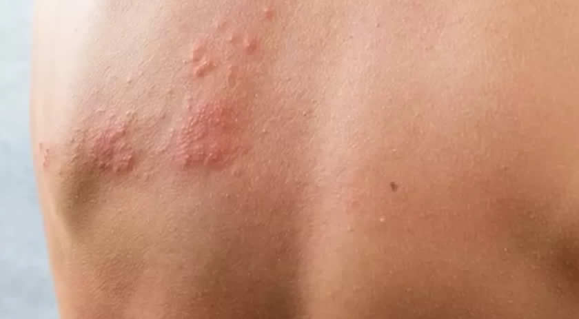 Causada pelo vírus da catapora, que pode voltar na fase adulta provocando o aparecimento de bolhas vermelhas na pele, principalmente na região do tórax e da barriga.