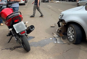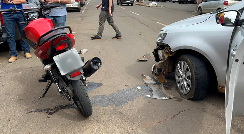 Segundo informações, os dois veículos trafegavam pela Rua São Paulo, quando o condutor do carro tentou parar em uma Oficina Mecânica para pedir informações, e acabou se chocando com a moto.