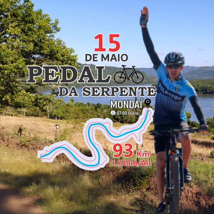 A cidade de Mondaí recebe nesse sábado (15) o evento de Cicloturismo denominado ‘Pedal da Serpente’. Ao todo serão 40 ciclistas de 11 cidades que irão participar. O evento é organizado pela Natur Cicloturismo e leva esse nome por causa do desenho que o percurso faz no Strava, aplicativo usado pelos ciclistas.