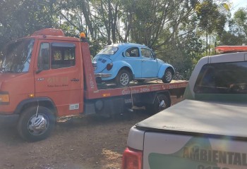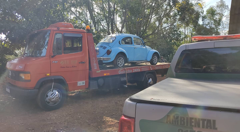 Em continuidade a Operação Hórus, a Polícia Militar Ambiental-PMA, por meio de sua unidade em São Miguel do Oeste, recuperou por volta das 11h da manhã desta quinta-feira, 27, na Linha Guamerim, interior do município de São Miguel do Oeste, um veículo com registro de furto.