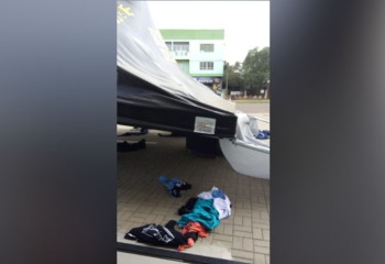 Além da fachada, a barraca coberta que fica em frente ao estabelecimento para a exposição de roupas também caiu juntamente com as roupas.