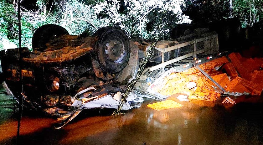 Segundo informações do colega, o condutor pegou o caminhão na troca de turno as 18 horas, e informou que além do casal, a filha de 6 anos, embarcou junto para a viagem. Um guindaste se deslocou de Chapecó sentido a São Domingos, para a retirada do caminhão, uma retroescavadeira foi utilizada para destombar o veículo, que estava com a cabine submersa.