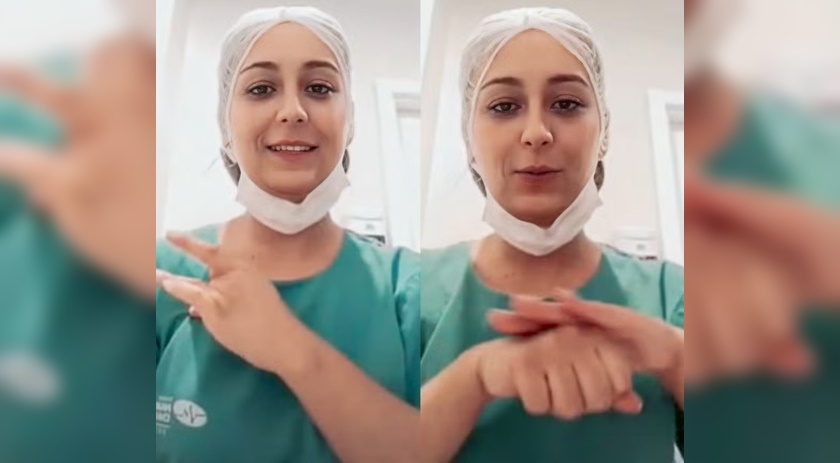A enfermeira conta que acionou uma amiga que sabe falar Libras e, por uma chamada de vídeo, aprendeu as palavras necessárias para explicar a evolução do estado de saúde da paciente a Fabrício.