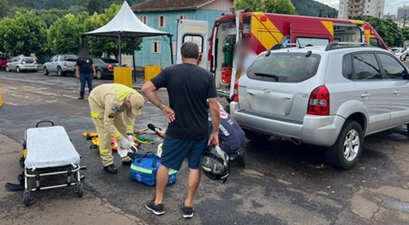 Mais uma colisão envolvendo carro e moto foi registrada em Francisco Beltrão, dessa vez o fato ocorreu no cruzamento da Rua Palmas com a Rua Venezuela.