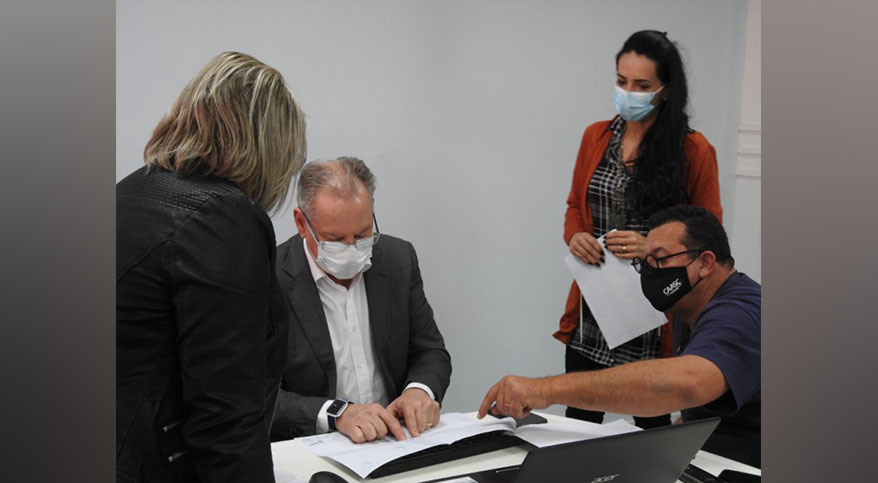 Durante reunião na manhã desta segunda-feira (07), o prefeito Wilson Trevisan recebeu o registro final do Loteamento “Distrito Industrial Rido Carlito Voltz”, com área total de 60.000m², localizado na Linha Emboaba e regulamentado pelas Leis 7.408/2017 e 7.516/2018.