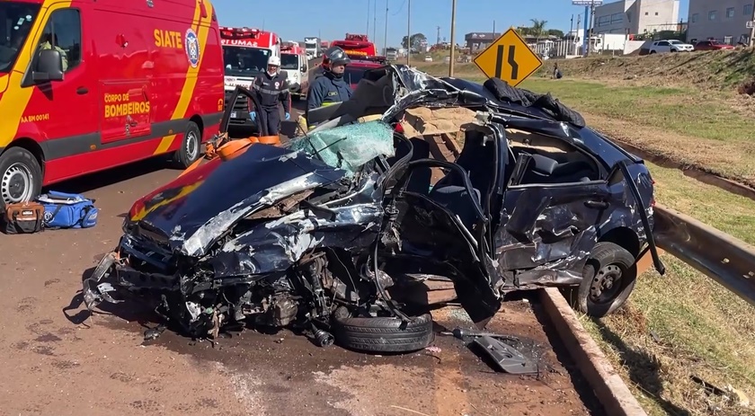 Segundo informações da Polícia Rodoviária Federal (PRF), o carro, após sair da via marginal, tentou realizar uma conversão irregular na rodovia, quando foi atingido pelo caminhão que seguia sentido Foz do Iguaçu. Com a força do impacto, a motorista foi ejetada do veículo, que foi arremessado a vários metros de distância. Uma criança de dois anos também foi ejetada do carro.