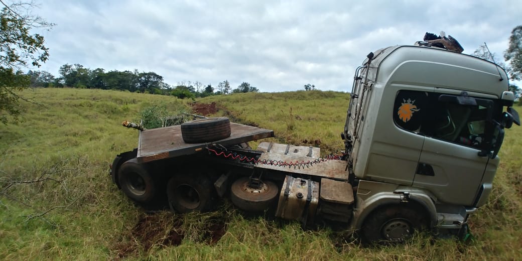 Por volta as 9h da manhã desta quarta-feira foi registrado um acidente envolvendo uma carreta com placas do Paraguai.