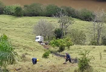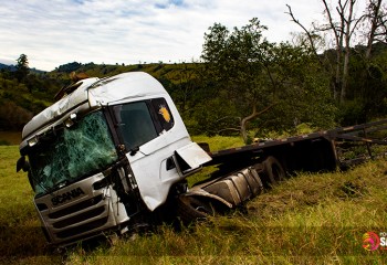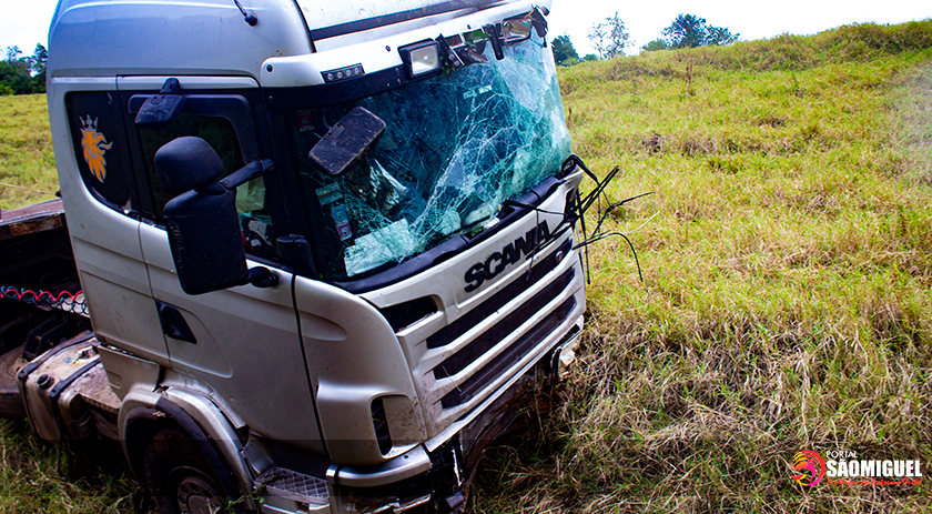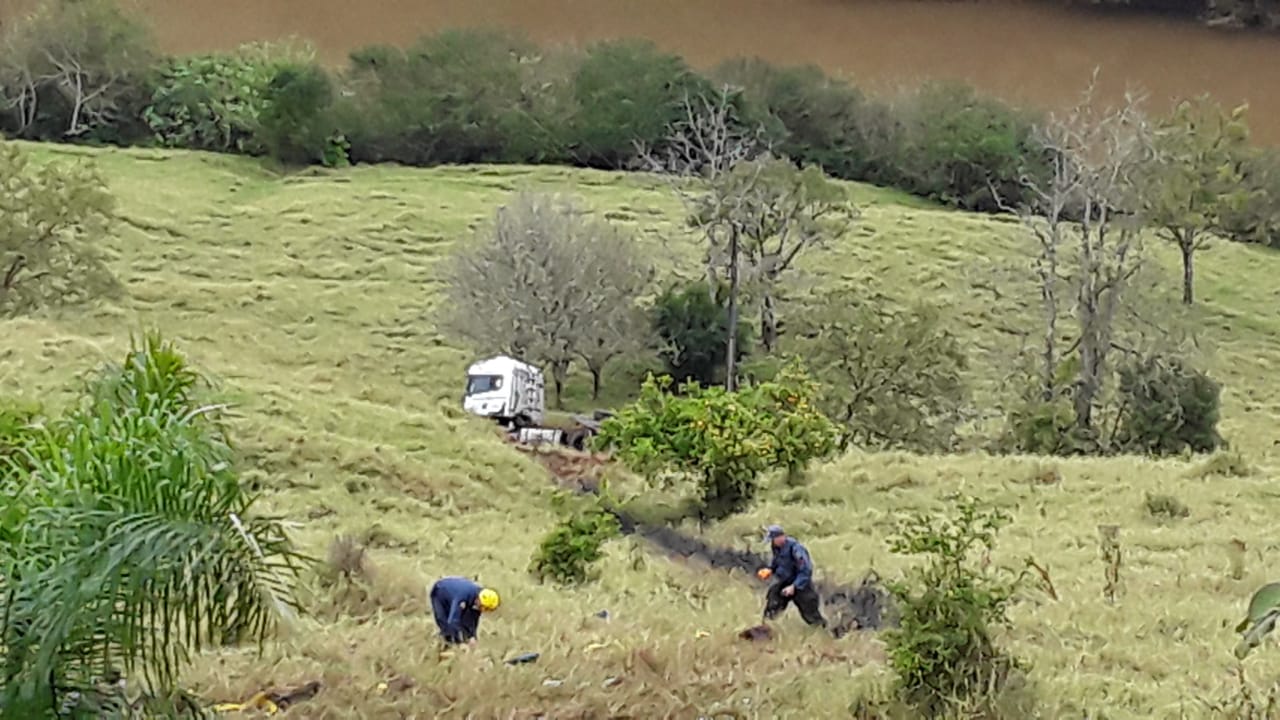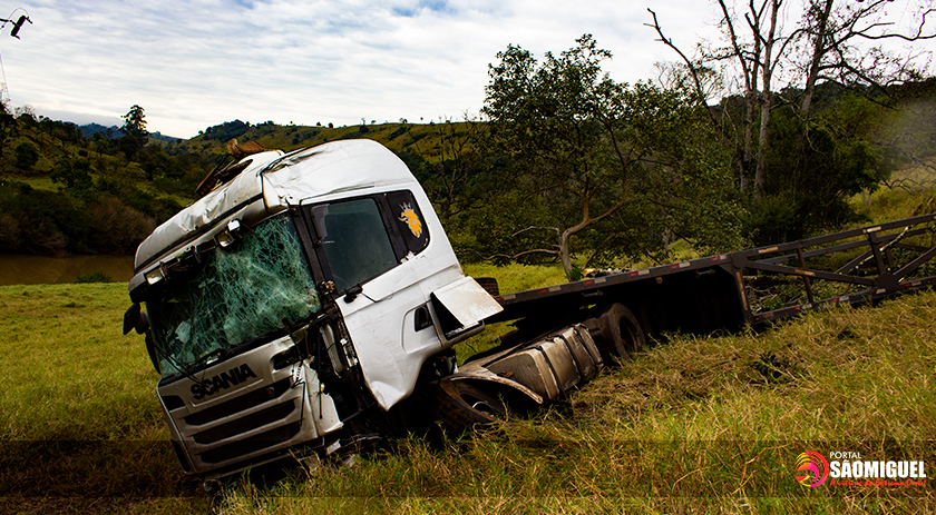 Carreta emplacada no Paraguai cai em ribanceira na BR 282