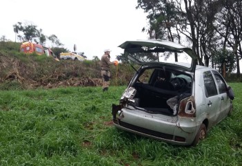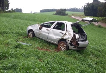 Ao chegar no local o Corpo de Bombeiros constatou o capotamento, envolvendo o automóvel Fiat/Pálio emplacado no município de Mondaí.
