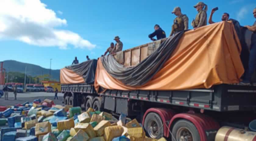 A droga estava em um caminhão bitrem Scania, com placas de Abelardo Luz, no Oeste, abordado, na BR-282, em Rancho Queimado.