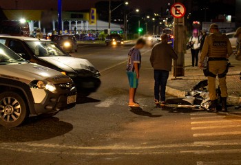 A colisão envolveu o veículo Fiat/Palio emplacado em Palmitos e a motocicleta Honda/CB 300 emplacada em São Miguel do Oeste.