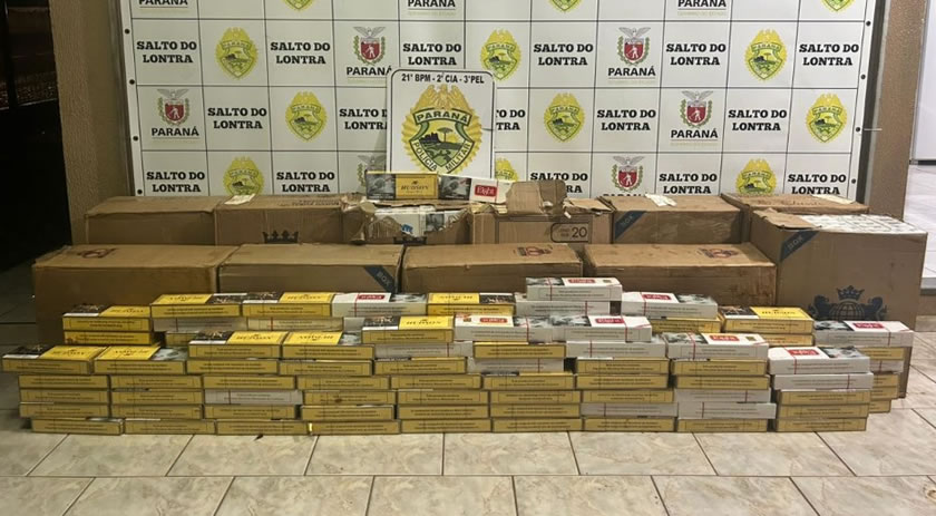 A Polícia Militar do Paraná apreendeu 675 pacotes de cigarros contrabandeados na manhã desta quinta-feira (4), em Salto do Lontra. Um homem foi preso durante a ação.