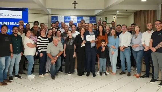 A concessão da honraria é iniciativa dos vereadores Nildo Borges Gás e Policial Oberdan Saretta. Na votação recebeu aprovação unânime do Legislativo beltronense. "Homenageando o Deoclides, a Câmara homenageia todos os árbitros do nosso município e a Associação de Árbitros, uma entidade bem organizada e que é motivo de orgulho de os seus integrantes", destacam Nildo e Oberdan. A entrega aconteceu nesta terça-feira (09) e contou com a participação da vice-prefeita Lurdinha Bertani, do presidente da associação, Luiz Carlos Armachuski, associados da entidade, do diretor de RH da Policlínica São Vicente de Paula, Milto Faenello, familiares e amigos do homenageado.