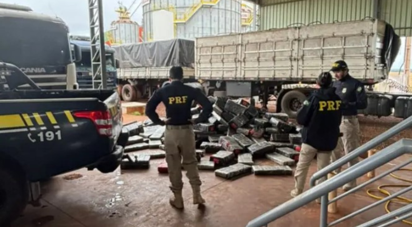 Na manhã desta quinta-feira (9), a Polícia Rodoviária Federal (PRF) realizou uma grande apreensão de maconha na comunidade Linha Marmelândia, interior do município de Realeza. Por volta das 08h00, os policiais abordaram um caminhão bitrem que transportava uma carga de milho. Durante a vistoria, a equipe encontrou, escondida sob os grãos, 2.620 kg de maconha.