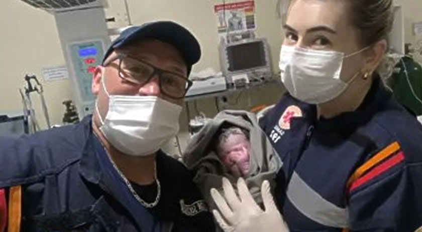 O nascimento ocorreu antes do início da transferência. Após o parto, a mãe e a recém-nascida foram avaliadas e permaneceram na unidade hospitalar para acompanhamento médico.