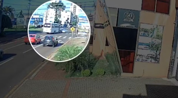 O acidente aconteceu no cruzamento das ruas São Paulo e Salgado Filho, no centro da cidade. O carro foi atingido por um micro-ônibus da Secretaria de Saúde de Assis Chateaubriand e, com o impacto, foi arremessado para cima da calçada.