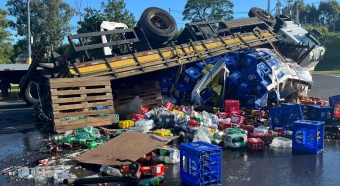 A ocorrência resultou apenas em danos materiais. As causas do tombamento não foram detalhadas. Durante o atendimento, o trânsito no local exigiu atenção redobrada dos motoristas.