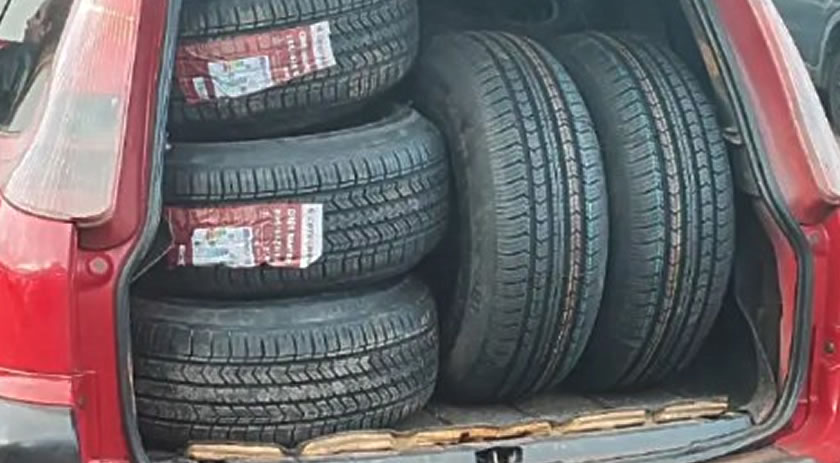 A ação envolveu equipes da Polícia Militar, Receita Federal e Polícia Federal, que abordaram um automóvel durante fiscalização de rotina. No interior do veículo, os agentes localizaram aproximadamente 45 pneus novos, de diferentes marcas e tamanhos, provenientes do Paraguai, configurando crime de contrabando ou descaminho.