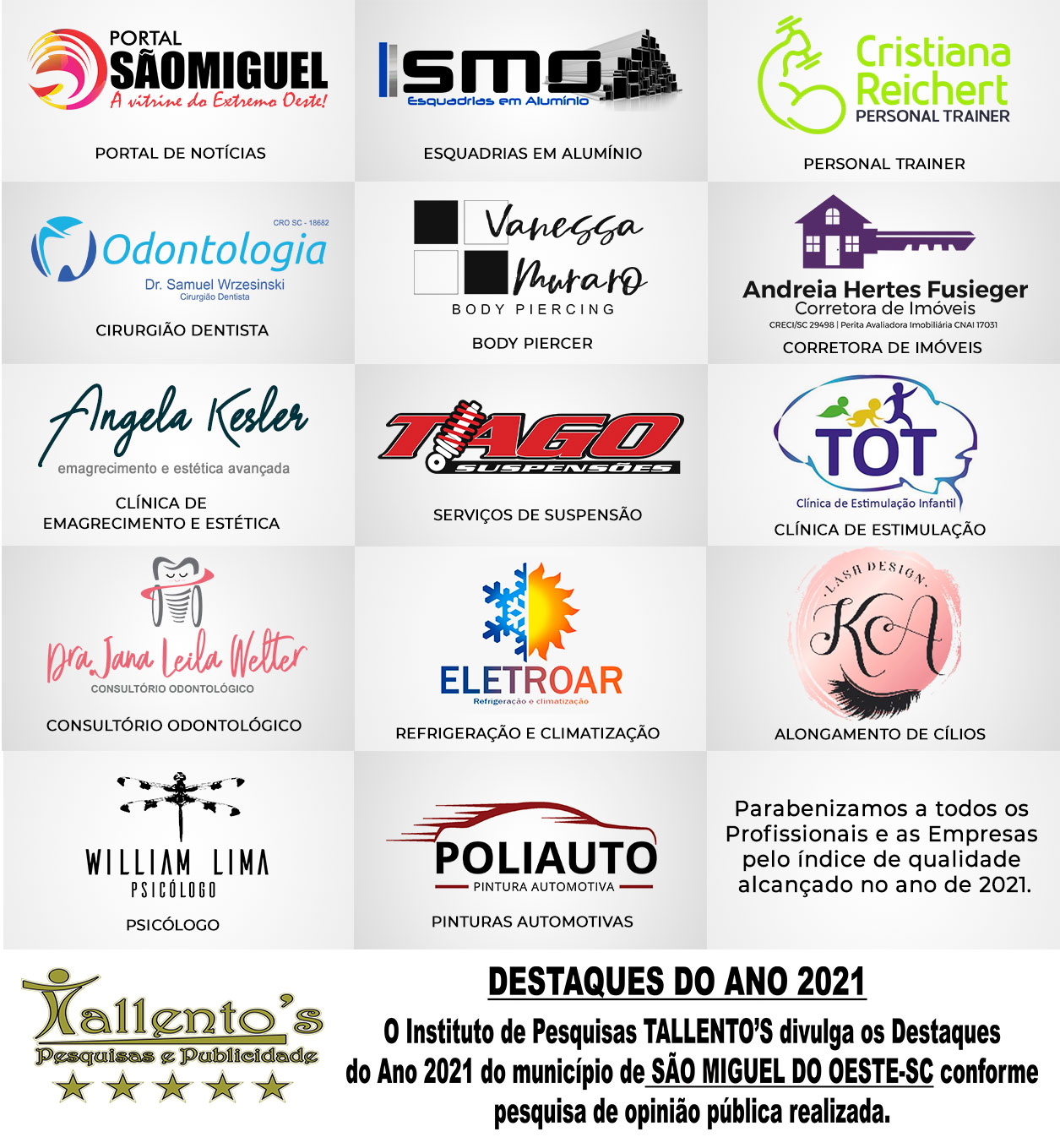 O Instituto de Pesquisas Tallentos realizou uma pesquisa de opinião pública com o objetivo de avaliar o índice de qualidade profissional e empresarial alcançado no ano do município de São Miguel do Oeste.