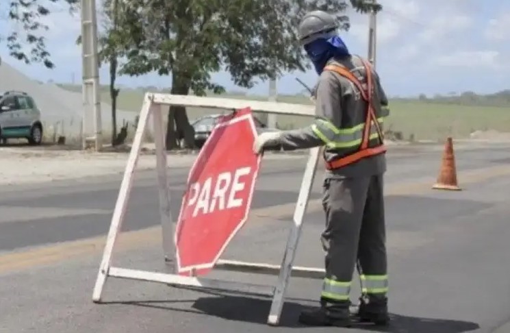 O tráfego seguirá com controle alternado, respeitando a sinalização e a orientação dos agentes no local.