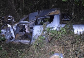 Com o impacto a camionete acabou parando a aproximadamente 300 metros de distancia dos outros veículos ao matagal. Todos os três veículos ficaram destruídos por culpa da força do impacto.