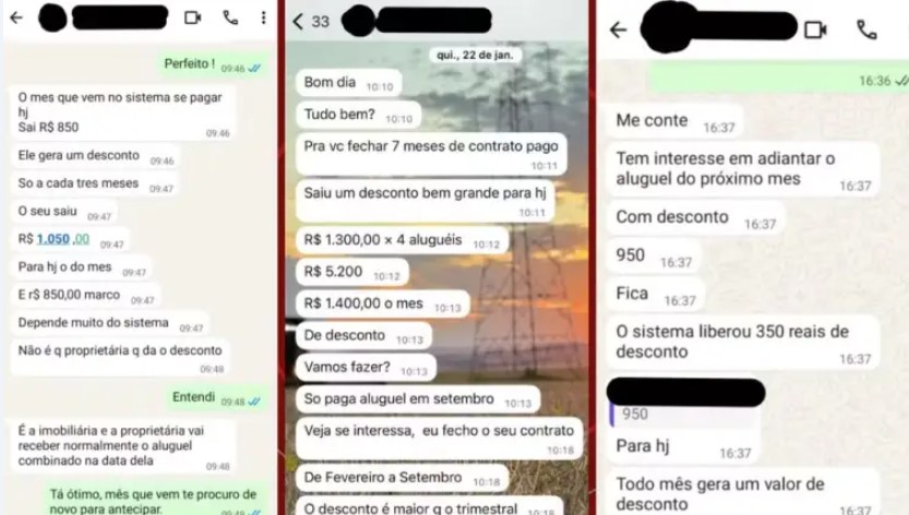 Em um dos casos investigados, a suspeita ofereceu um desconto significativo no aluguel mensal para um pagamento antecipado anual, mas não repassou os valores ao proprietário.