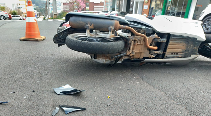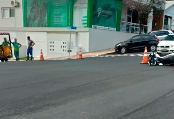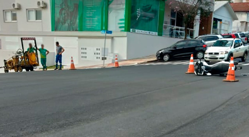 Na tarde desta segunda-feira (09), um motociclista ficou ferido ao colidir contra uma máquina que realiza a pintura de sinalização viária, na Avenida Getúlio Vargas, centro de São Miguel do Oeste.