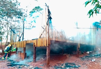 Um incêndio a residência mobilizou a equipe do Corpo de Bombeiros na manhã deste sábado, (14), por volta das 8h, na linha Aparecida interior do município de Iporã do Oeste.