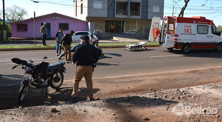 Um acidente de trânsito envolvendo um carro e uma moto, foi registrado na manhã desta quarta-feira (22), na Avenida Antonio Silvio Barbieri, em Francisco Beltrão.