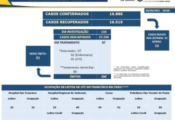 Em novo boletim epidemiológico divulgado pela Secretaria de Saúde de Francisco Beltrão, nesta sexta-feira (24), que traz números das últimas 24h, 11 novos casos de Coronavírus foram confirmados.