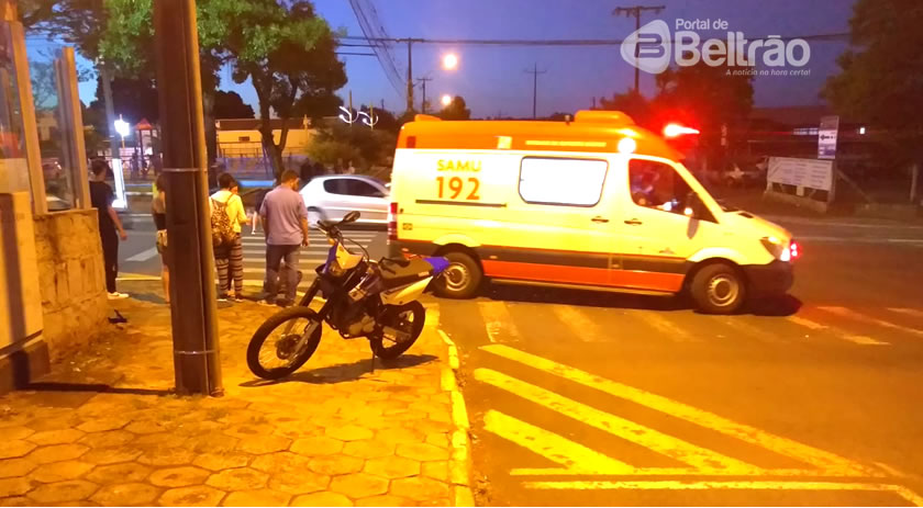 Com a batida frontal o motociclista, de 19 anos, teve ferimentos moderados, sendo atendido pelo SAMU.