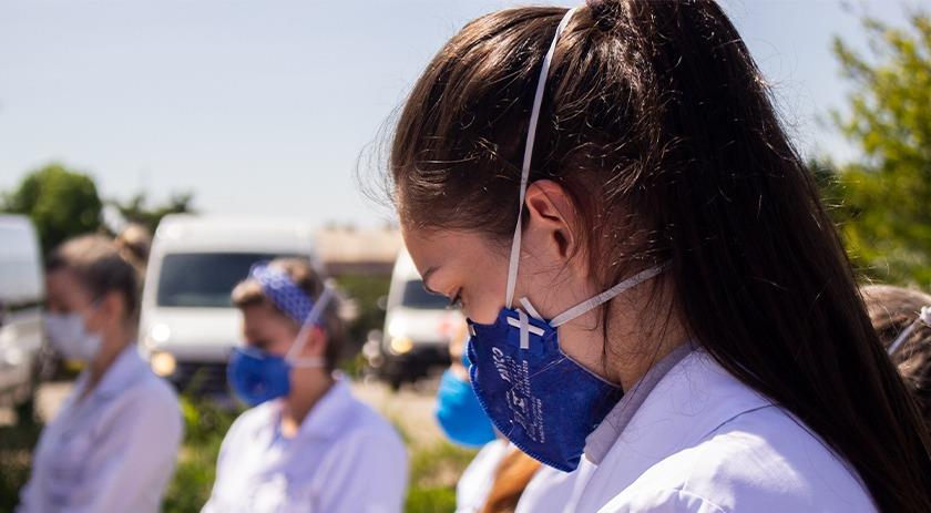 Profissionais exaustos, sistema de saúde em colapso, vivemos lutando com um adversário que nem se quer vemos, apenas sentimos, e estas pessoas fazem o possível para salvar vidas, e em um minuto de silêncio fazem homenagem a quem partiu, e em oração pedem conscientização a população!