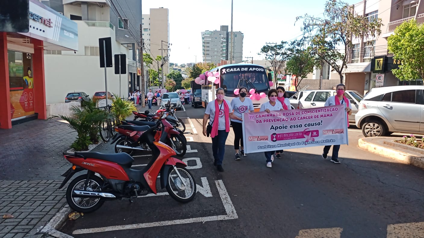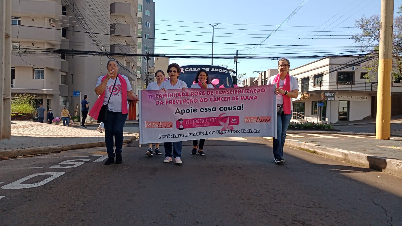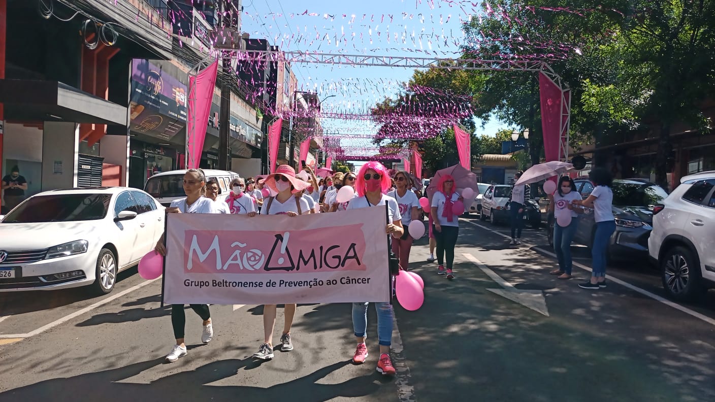 Aconteceu na manhã deste sábado (30) a 11ª Caminhada Rosa com o tema “Celebre a vida”, promovida pelo Grupo Beltronense de Prevenção ao Câncer Mão Amiga, em parceria com a Associação Médica do Paraná, juntamente com a Guarda São Cristóvão e o Moto Grupo Bodes do Asfalto. O evento havia sido cancelado no último sábado (23) devido à chuva.