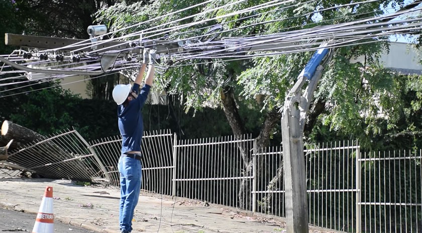 A semana começou com muito trabalho para mais de 200 técnicos e eletricistas que estão atuando na recomposição da rede de energia nas regiões Oeste e Sudoeste após o temporal da tarde deste domingo (28). As regiões têm sofrido com eventos climáticos severos frequentes, como o de ontem, com pancadas de chuva intensas e ventos que passaram de 90 km/hora.