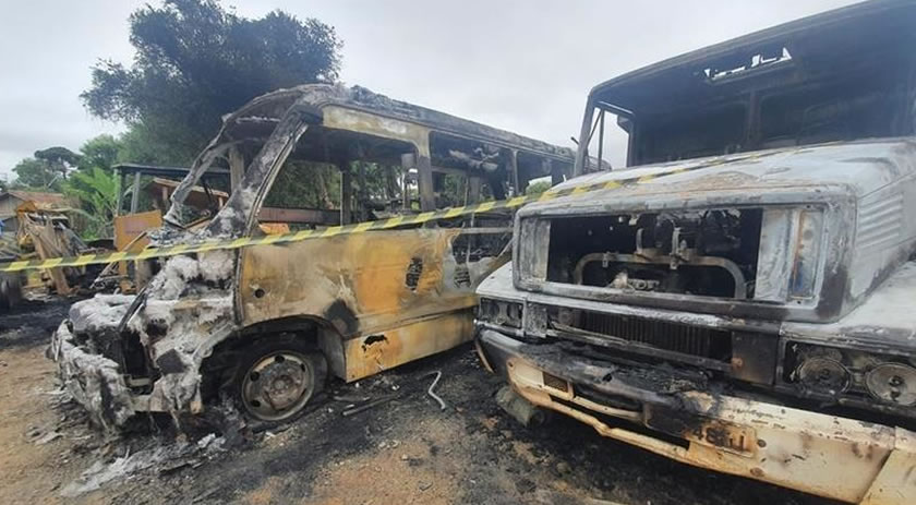 Dois homens incendiaram veículos públicos da prefeitura de Campo Magro, na Região Metropolitana de Curitiba, na madrugada desta quinta-feira (2). Ao menos 13 veículos foram destruídos pelas chamas.