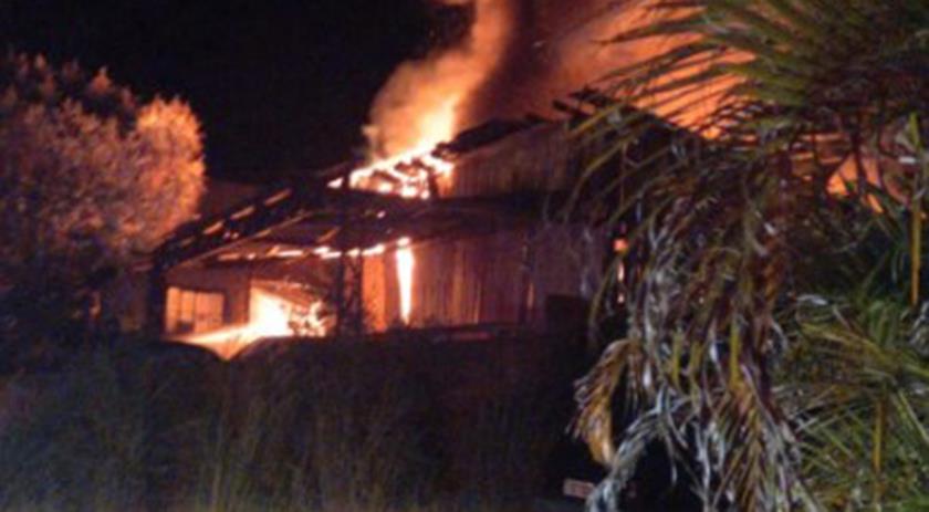 Um incêndio em galpão de aproximadamente 150m² por volta de 01h30 da madrugada desta terça-feira 14, mobilizou equipes do Corpo de Bombeiros que se descolocaram até a Av. Paraná no centro de Barracão e encontraram uma edificação em madeira em chamas.