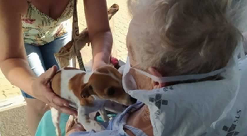 Conforme avaliação da equipe e acompanhamento da Comissão de Cuidados Paliativos, Lurdes e a família foram levados até a entrada do Hospital para que fosse possível realizar o reencontro. Os cachorrinhos estavam limpos e com as vacinas em dia.